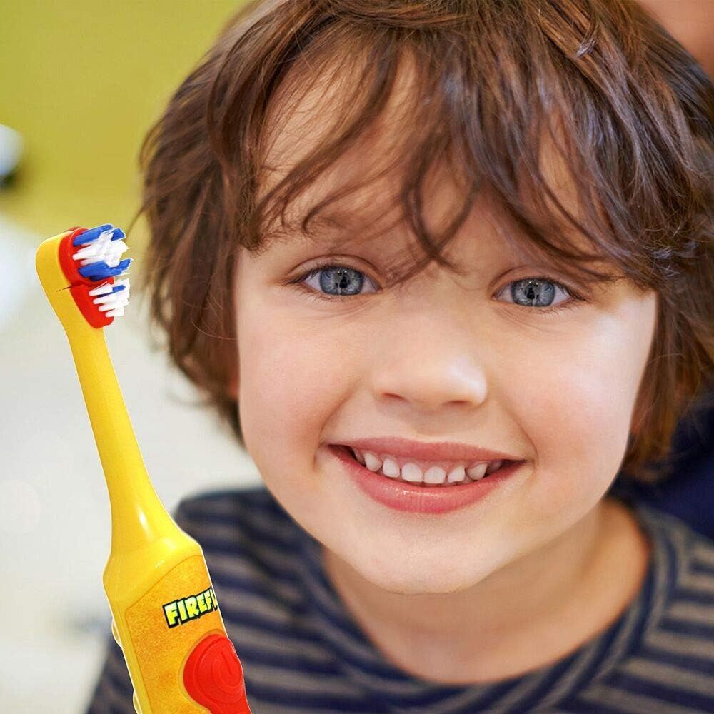 Firefly's Clean N' Protect toothbrush makes brushing fun and effectively cleans teeth. It has a soft rotating head that blasts away plaque, preventing gum disease and tooth decay. It's massaging action stimulates gums while effectively cleaning teeth. This brush has an ergonomic handle for anti-slip grip, compact head designed for a child's mouth, and a fun antibacterial character cap that protects the toothbrush.
