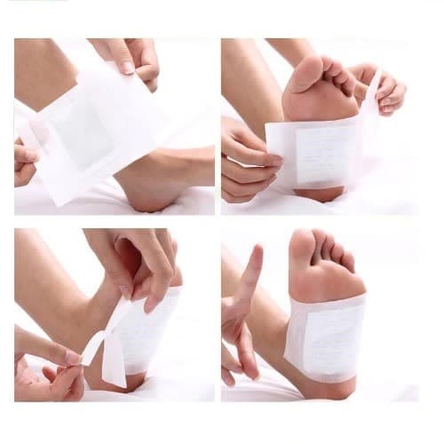 Apply Kinoki detox patch one hour before bed-time.Wash and dry your feet or body part before applying kinoki Detox Patch.Take one adhesive sheet and slowly peel off paper.Place the foot pad on the adhesive where noted to "Put adhesive sheet on this side" and place onto the soles of your feet or the desired area of other body part.(Socks can be worn if necessary)Wear for 8-10 hours then remove pad.Wipe surface with wet towel until it?s no longer sticky.Used patches will appear dark greenish or grayish as they absorb toxins and waste matter from your body.Continue to use each night until the discoloration of the pad subsides.When used kinoki patches show signs of lightening, apply once or twice a week for maintenance.