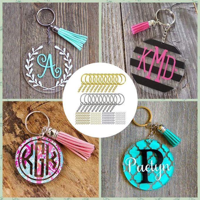 Acrylic Keychain;tassel pendant keychain jewelry making DIY;Acrylic keyring ornaments Letter pendants;Tassel diy kit craft key rings chains open rings;leather tassel fringe charm diy accessories;clear acrylic blanks round disc craft findings