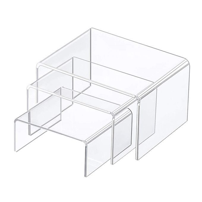 Package includes: 1 set transparent acrylic display risers, contains 3 pieces display risers in 3 different sizes