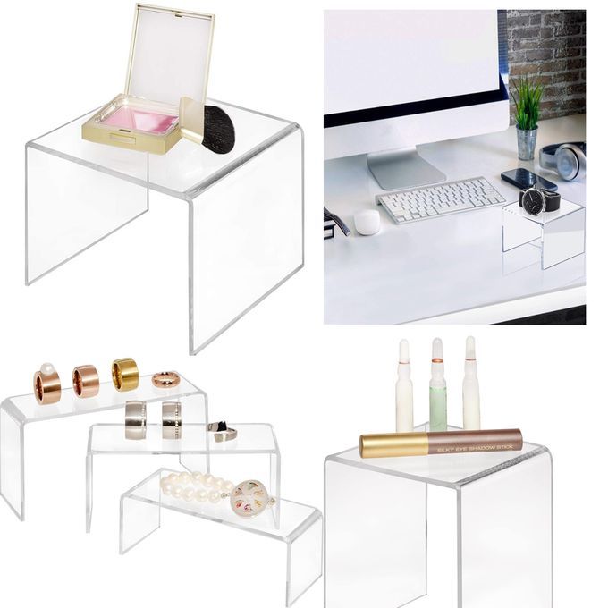 【Material】These clear display risers are made of acrylic, transparent material looks neat and tidy, durable and stable to hold the exhibition.
