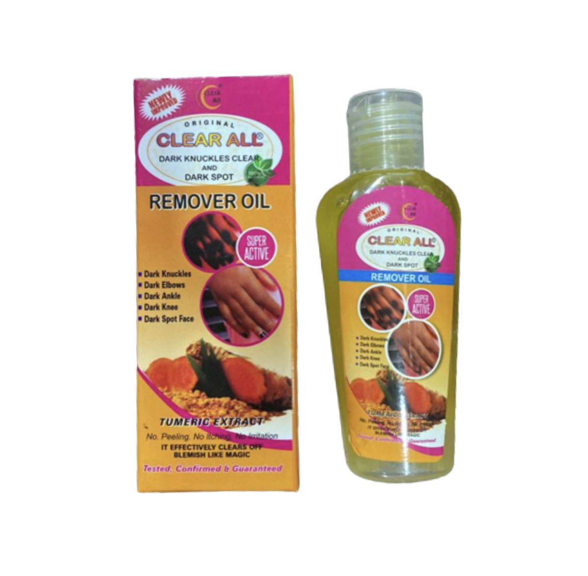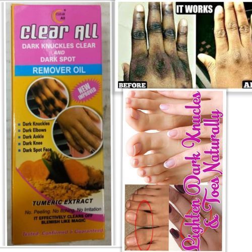 "Clear All Dark Knuckles Clear And Dark Spot Remover Oil.Clears all Dark Knuckles, knees, Elbows, Ankles, dark spot face etc
