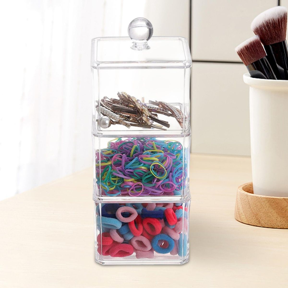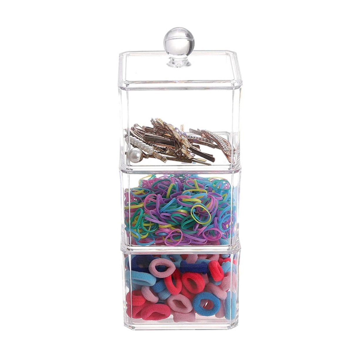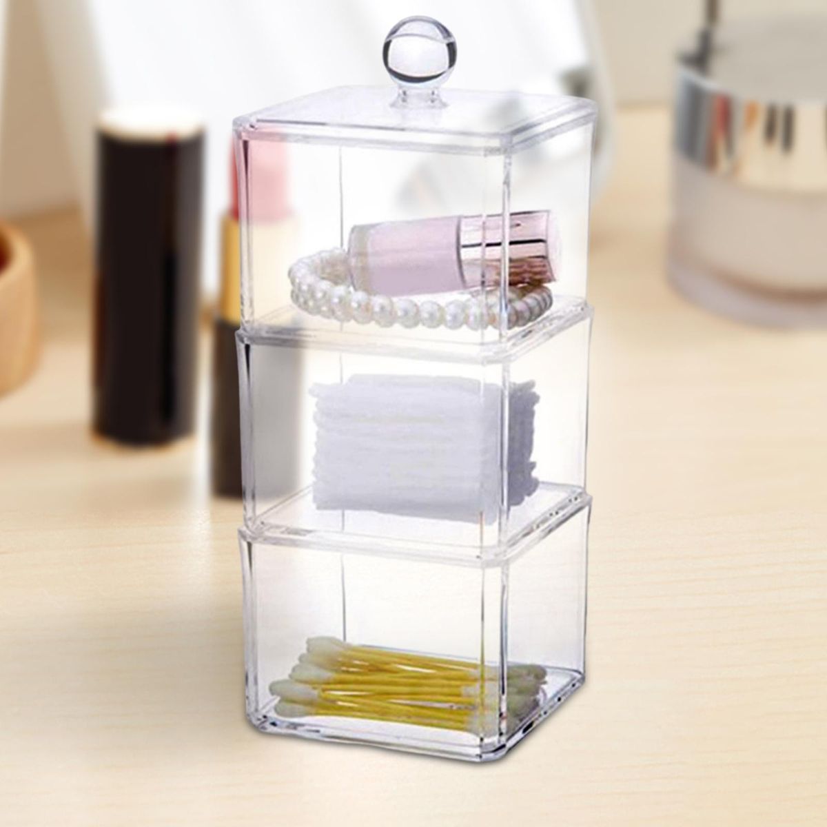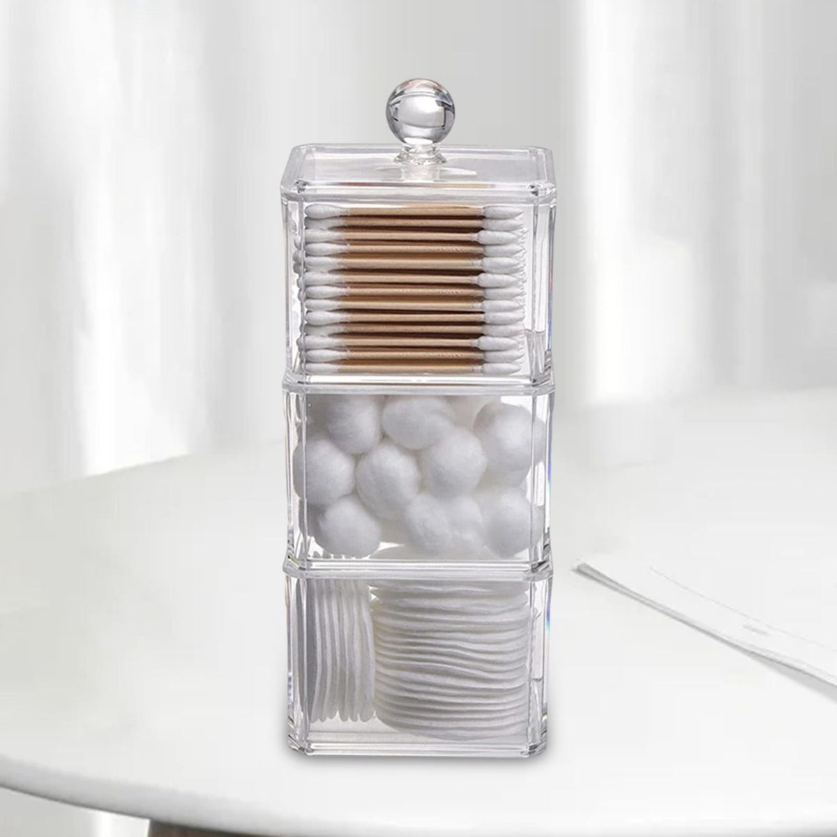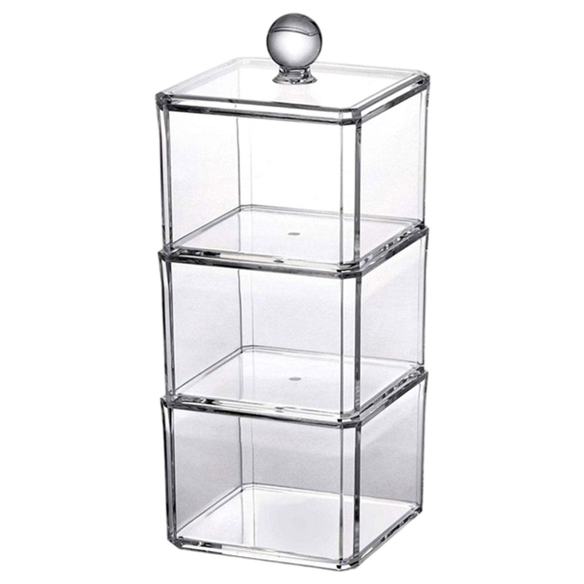 Durable Material: Made of durable Acrylic plastic, organize your cosmetics into a personalized beauty display.Storage Box with Transparent Cover: Transparent dust-proof cover design, simple desktop Beauty Organizer.Stackable Design: Can be separated into three independent storage boxes, can also be stacked to form a storage tower, more convenient for storage.Desktop Storage Box: Perfect for cotton pad, cotton swab, puff, hair clip, hair circle, , jewelry ornaments, etc.Occasion: Can be used in bathroom, vanity ,bedroom, dressing room, toilet, table or countertop.