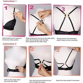Longer straps than most and easy to use! Attach the hook end of the strap to the "eyes" on your bra, wrap the belt around your waist, adjust to fit and attach the hooks of your bra to the "eyes" on the strap.