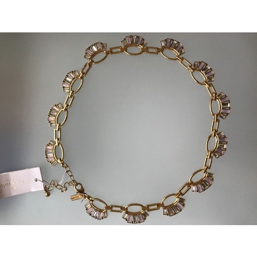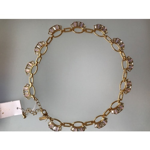 Necklace - Pink And White Color Stones On Gold Color Tone