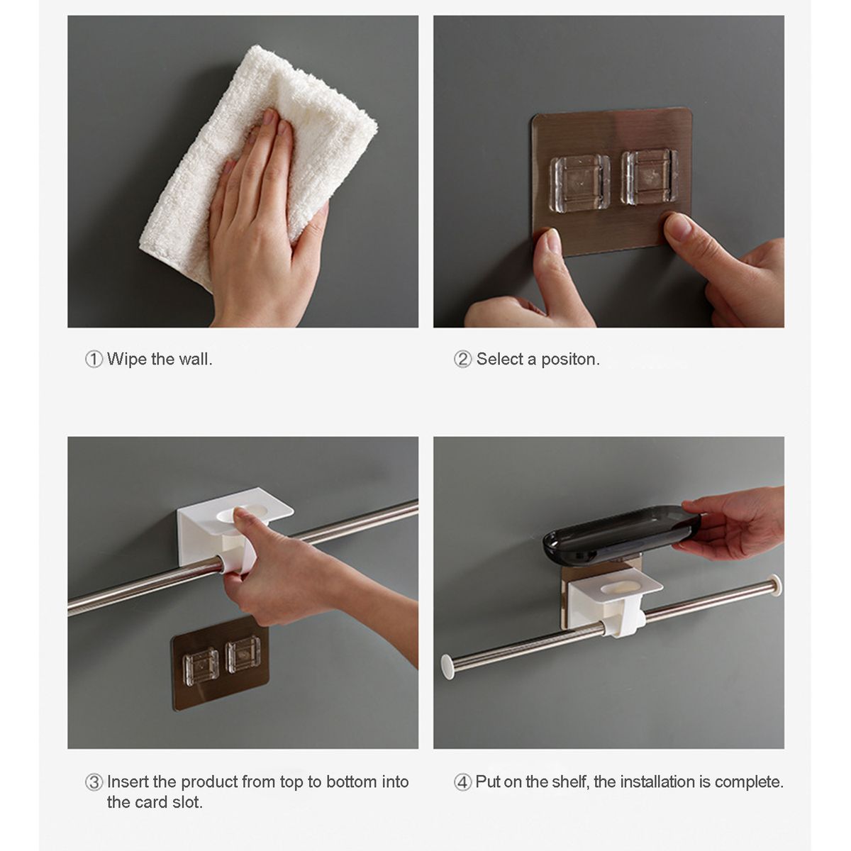 [Wall Mounted]The clothes bar with nail-free sticker can mount on concrete/tile walls or other type walls.