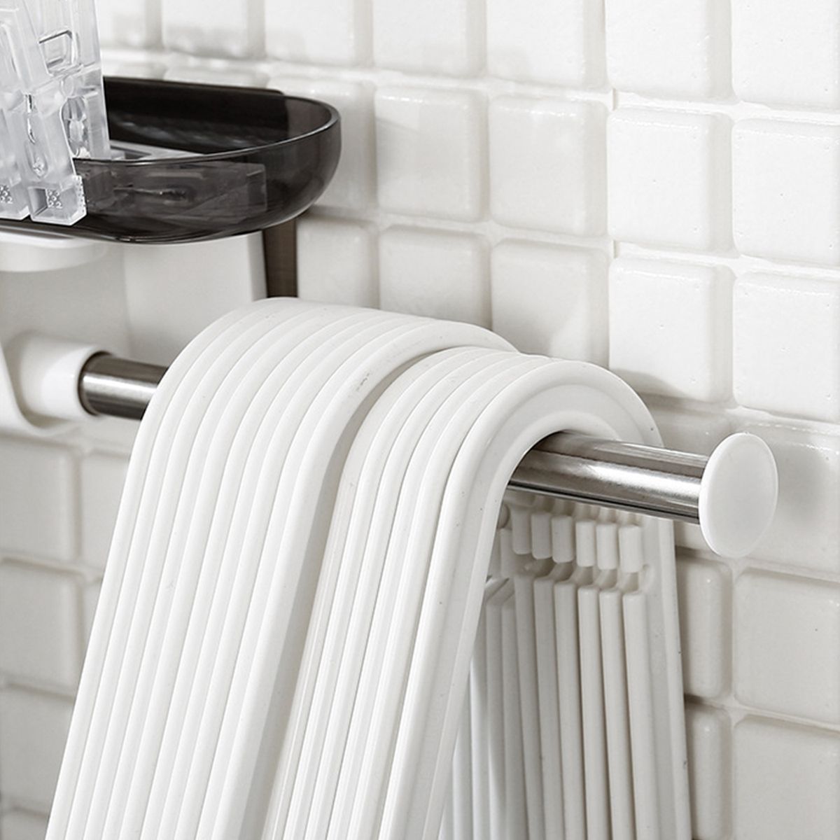 [Widely Applicable]Save space simple durable cloth hanger holder, also convenient to use as a towel holder while showering.