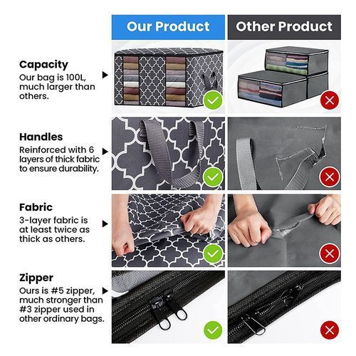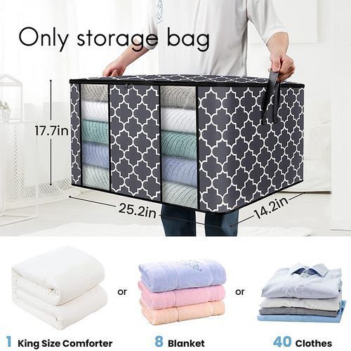 [Large Capacity] storage bag size is 25.25 x 17.75 x 14.25 inches (length x width x height), with a capacity of 100 liters. This blanket storage bag has enough space for a large bed quilt, pillow, quilt, seasonal clothing, toys or tools.