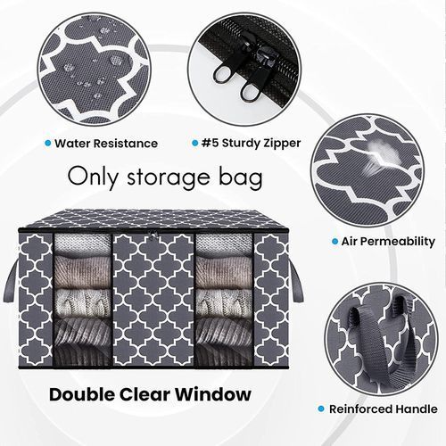 [High-quality fabric] blanket storage rack is made of high-quality, odor-free, breathable non-woven fabric, with 2 transparent windows, which can quickly and easily identify the stored content. This clothing storage bag promotes ventilation and protects stored items from dust and debris.