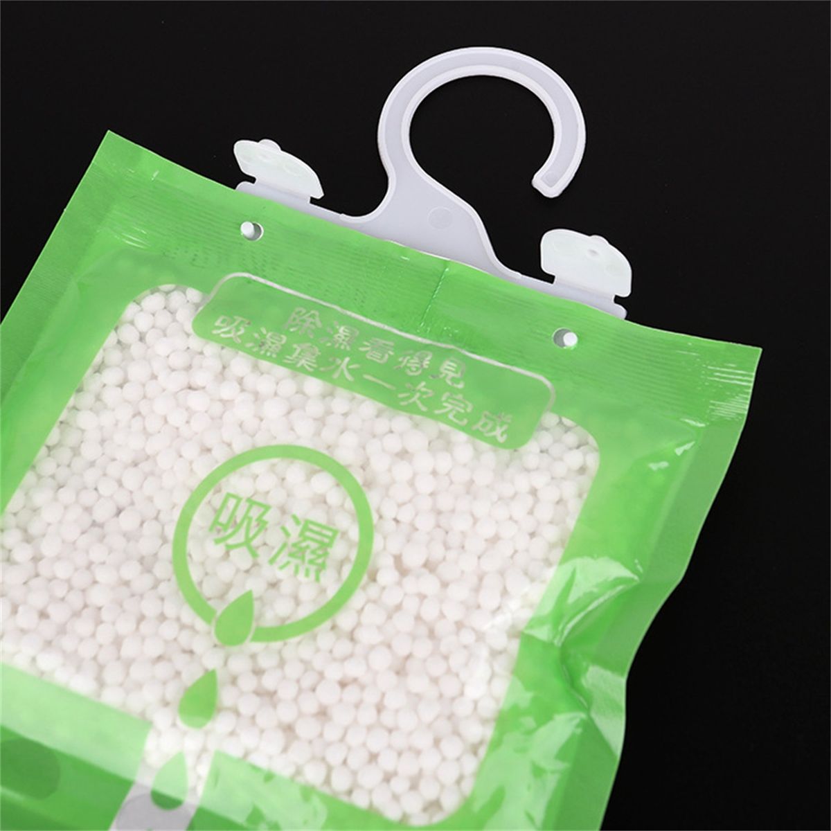 Featuring a hanging design, the desiccant bag can be hung in wardrobe to keep your clothes dry in rainy season.