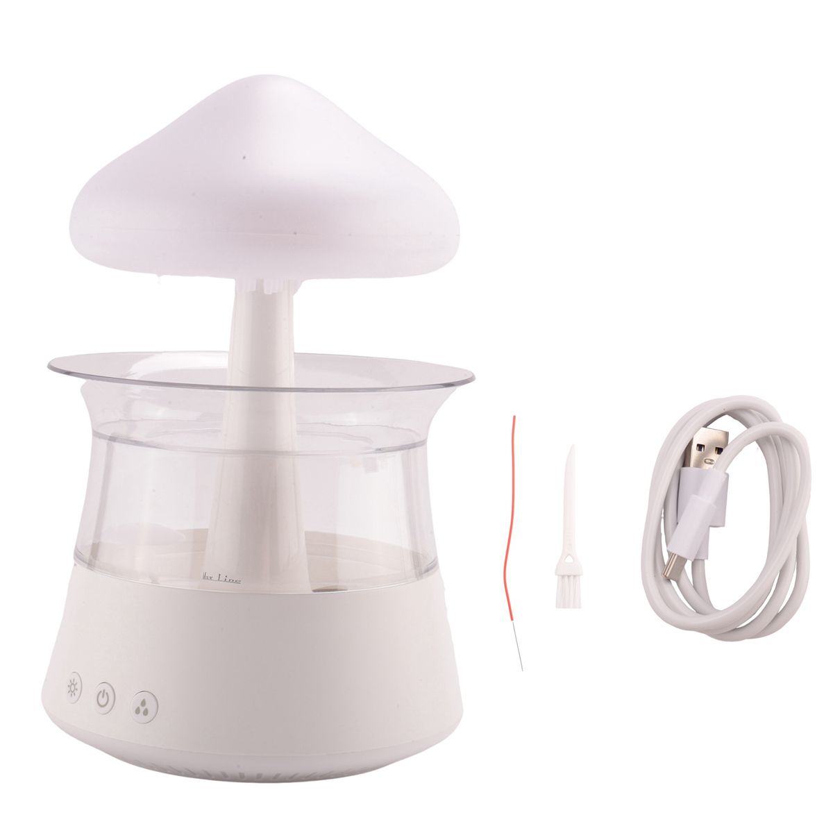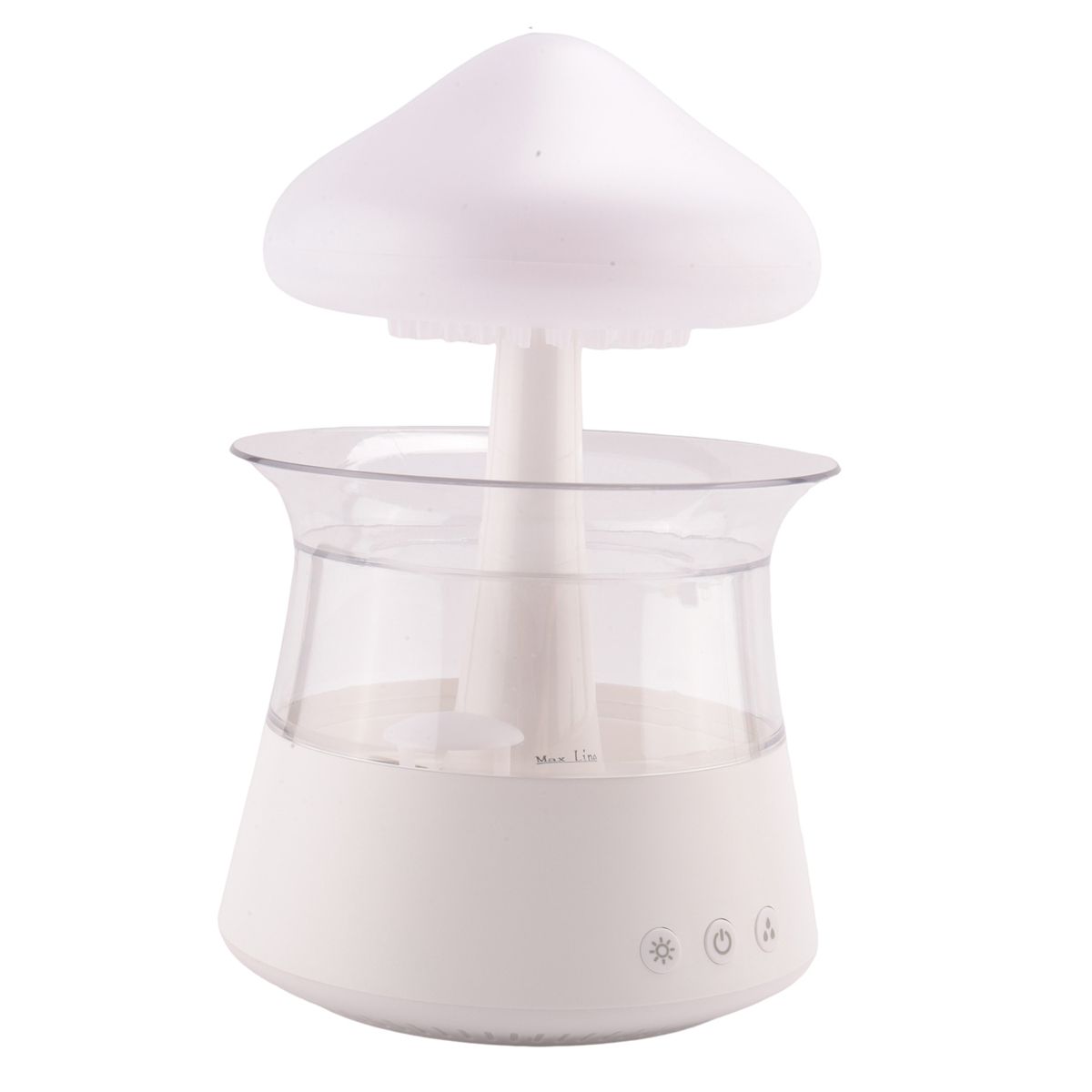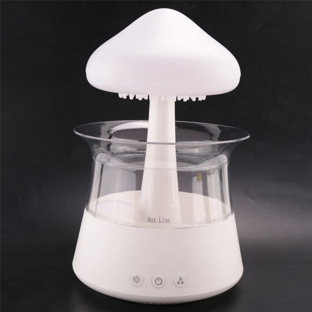 Various colour settings: This humidifier has 7 colour LED lights, press and hold the button to breathe or always on. Press and hold the middle button for more than 3 seconds to turn the machine on and off. With a quick click, you can adjust the machine to either water or light. Press the right button for most rain. You can adjust the amount of raindrops and spray water