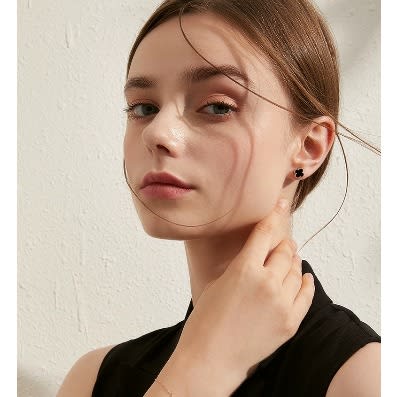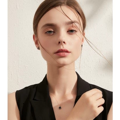 Buy Clover Pendant Necklace With Stud Earring Jewelry Set - Black in Nigeria