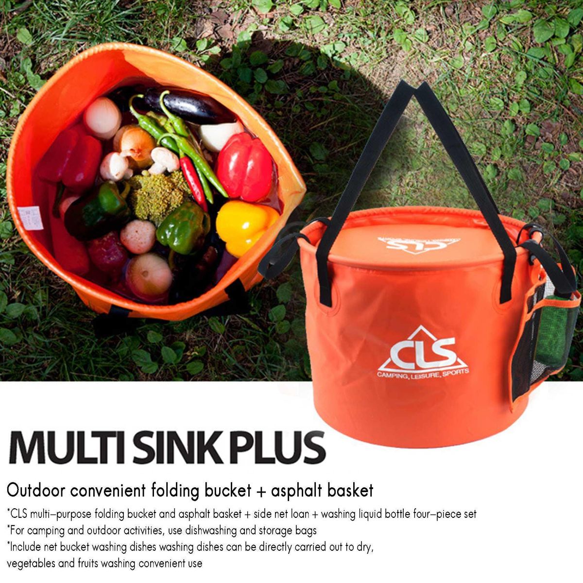 Multi purpose folding bucket and drain basket + side net loan + detergent bottle 4-piece set