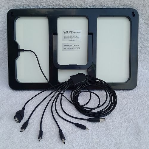 This solar Panel is equipped with Six (6) different USB charging adapter to cater to the needs of numerous charging ports. You charge just about anything rechargeable. It can Charge Phones, USB fans, digital camera, Power banks, Bluetooth Speakers e.t.c
