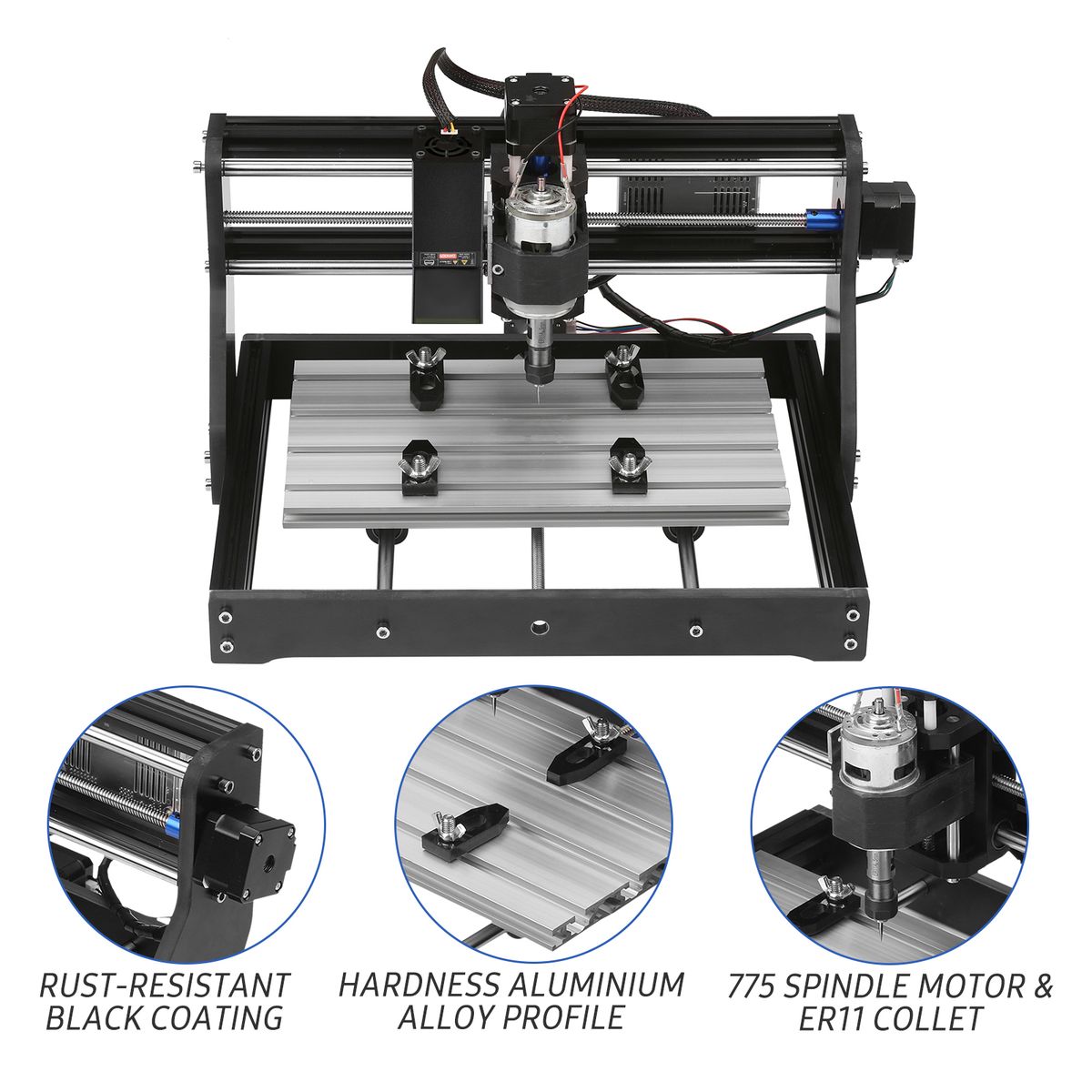 features high precision and high stability. It ensures flexible and precise engraving and carving. 300x180x40mm working area realizes a really limitless carving area from length, width and height by adjusting the machine. Powerful laser module helps you work on different kinds of material. It is suitable for DIY lover, CNC engineer, artist and more people to use.