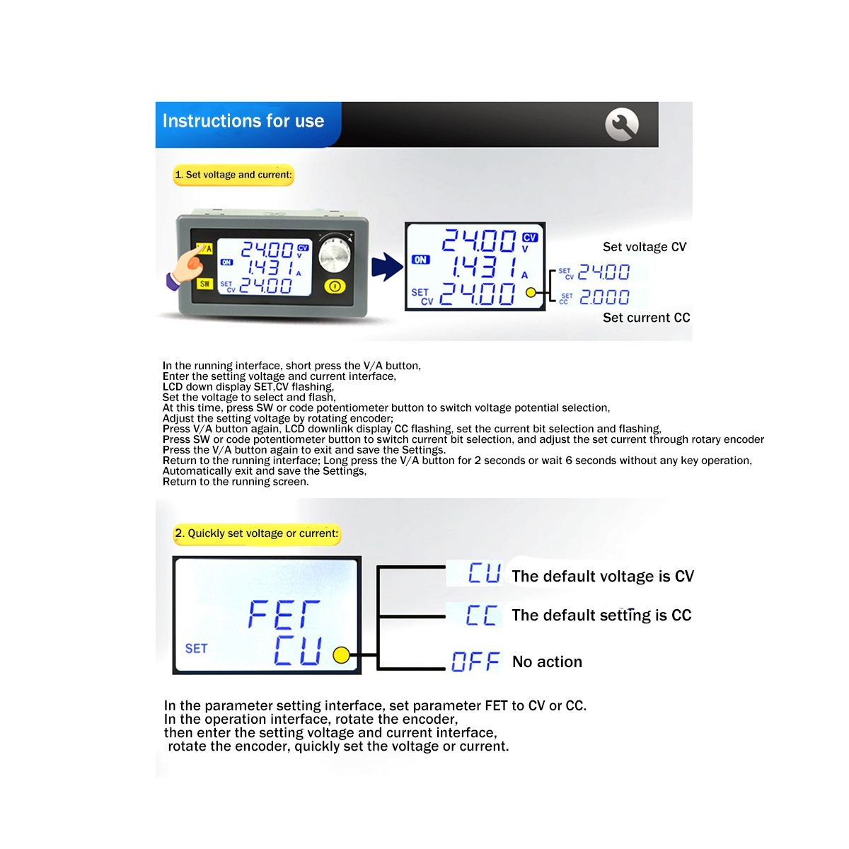 Output overcurrent protection: (0-4.2A adjustable, default 4.2A)