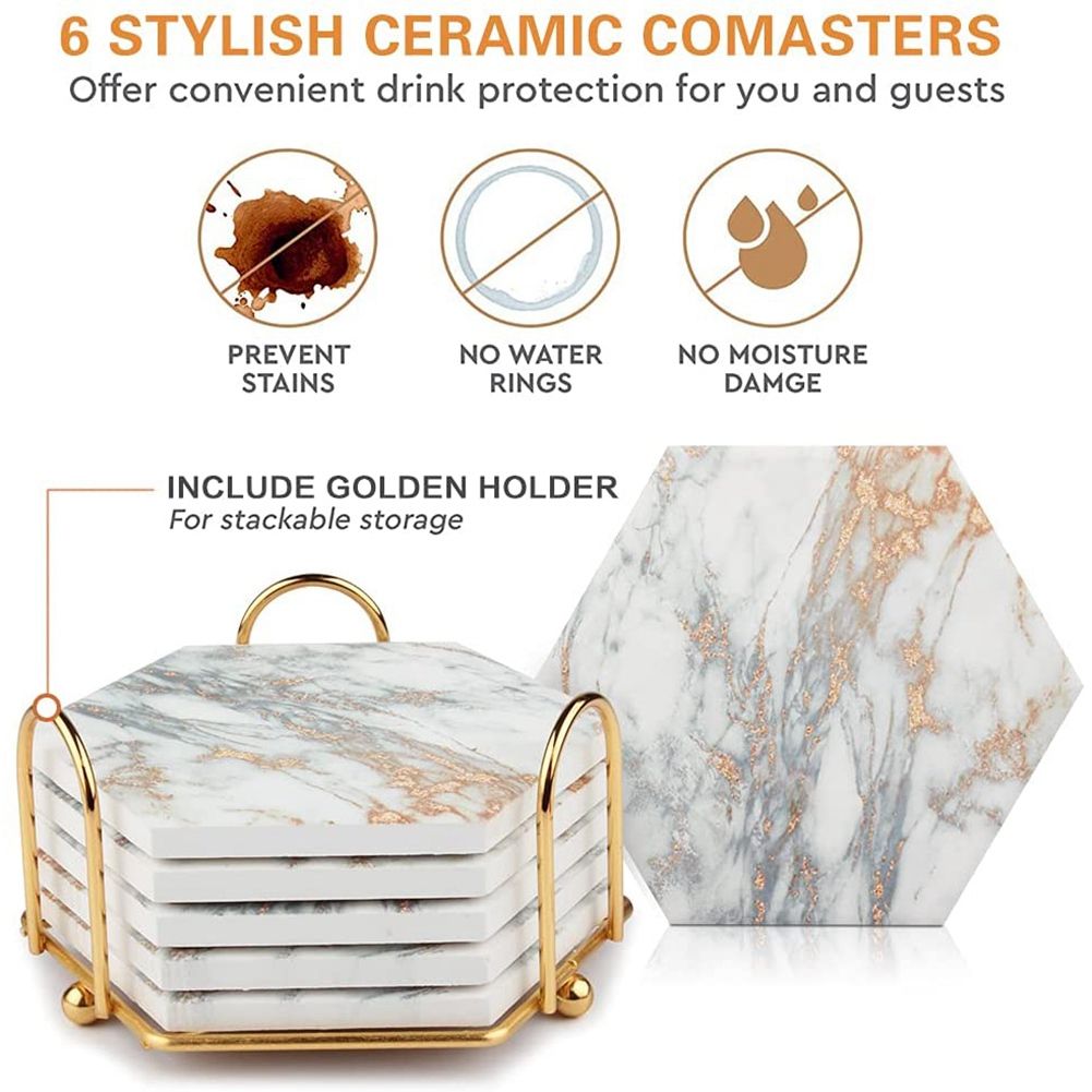 NEED A GIFT IDEA? - This 6 piece ceramic coaster set makes a practical yet stylish gift for all your upcoming events and special occasions. A present that is truly versatile - wrap a set up for your next housewarming, wedding, or hostess gift!