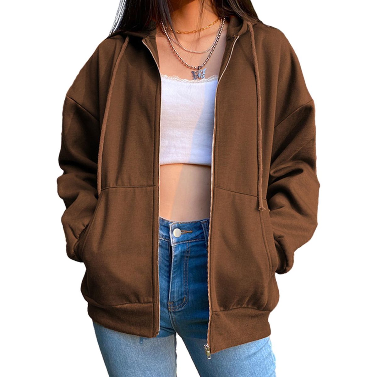 Buy Coat Long Hat Zipper Classic Women's Hoodie Coat Oversized Coffee 2XL in Nigeria