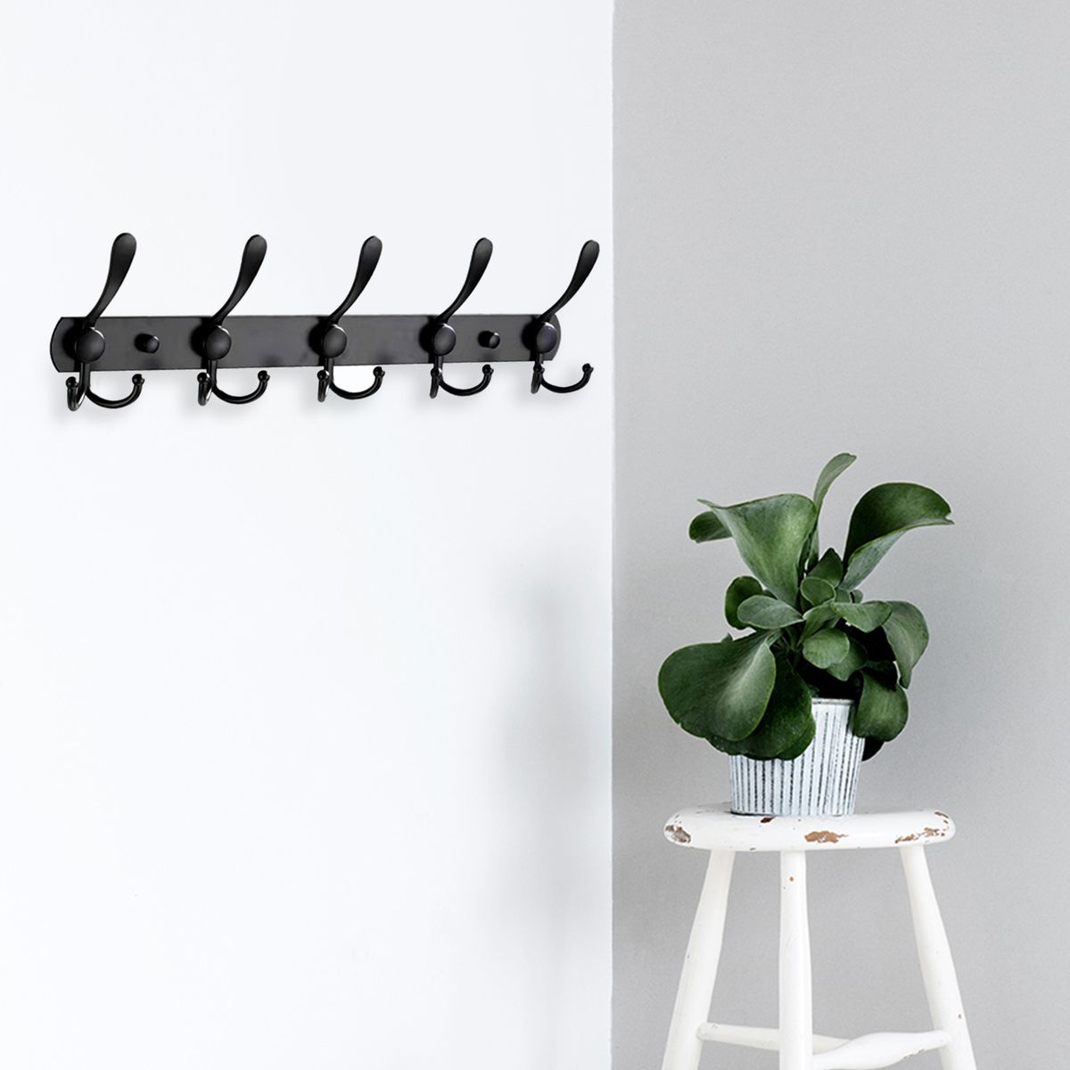 The wall mounted coat hook has 5 tri hooks, heavy-duty and non-slip. It is practical to hang coats, hats, towel, purse, scarfs, robes.