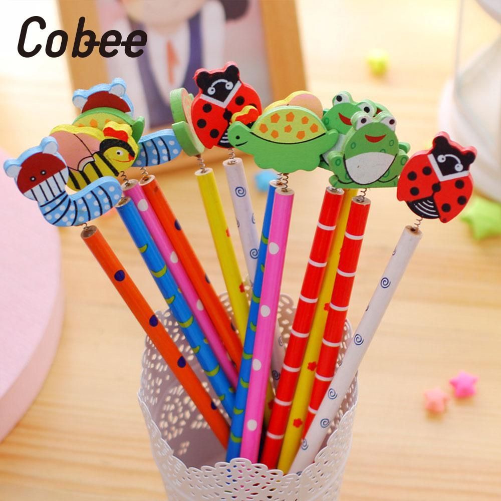 1*Cobee Wooden Spring Pencil With Eraser School Stud