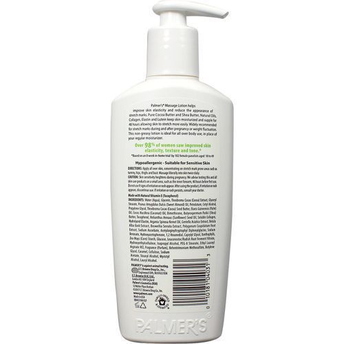 for pregnancy stretch marks. Enriched with new Bio C-ElasteTM Complex, pure Cocoa and Shea Butters and Vitamin E, this Massage Lotion has been proven to help improve skin's elasticity and moisture.