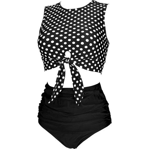 - Pattern:Tie Closure Crop Knotted Tankini Top Bankini Retro High Waisted Modest Coverage Bikini Set