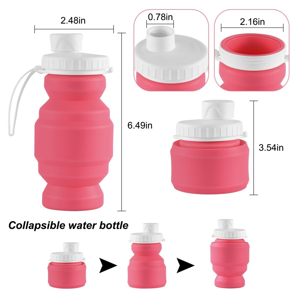 The diameter of unfolded size is 7.5cm and the height is 16.5cm. The diameter of compression size is 7.5cm and the height is 8.5cm.