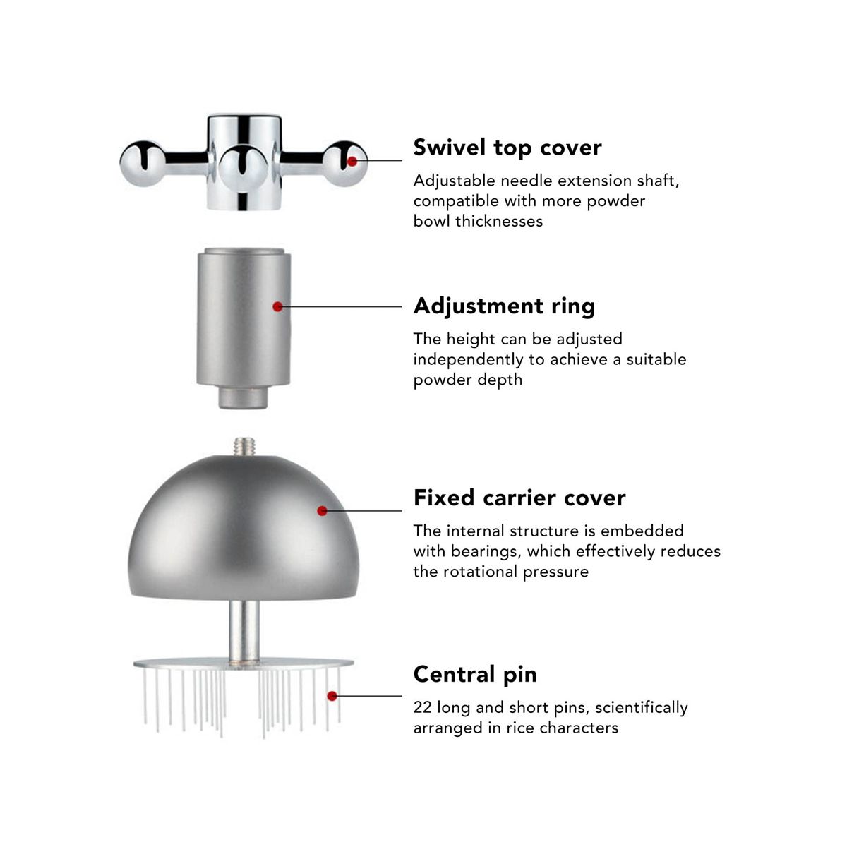 Fixed Cover: The fixed carrier cover contributes to prevent powder from splashing, and it can reduce rotation resistance.