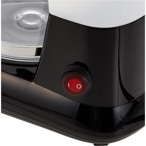The red light on the switch button illuminates when the coffee maker is switched on.