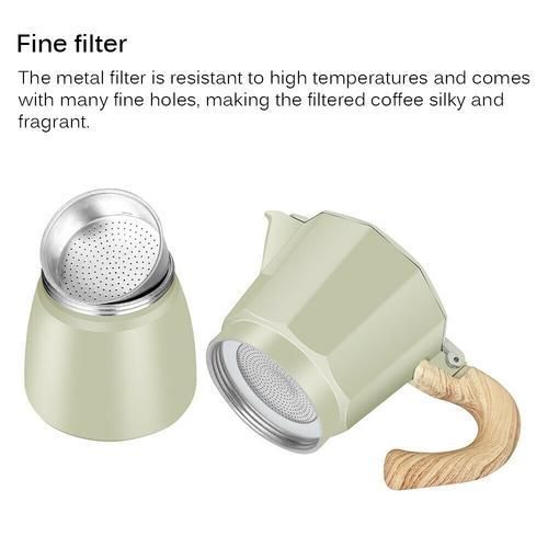 The metal filter is resistant to high temperatures and comes with many fine holes, making the filtered coffee silky and fragrant.