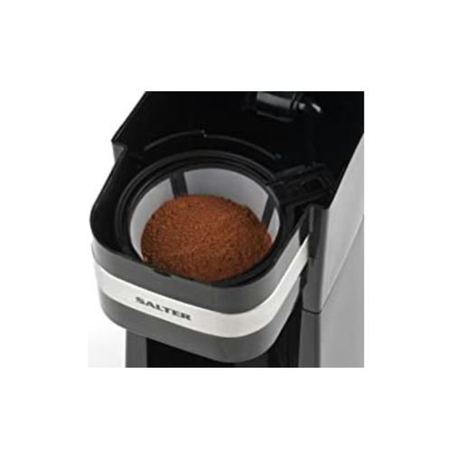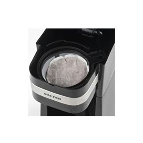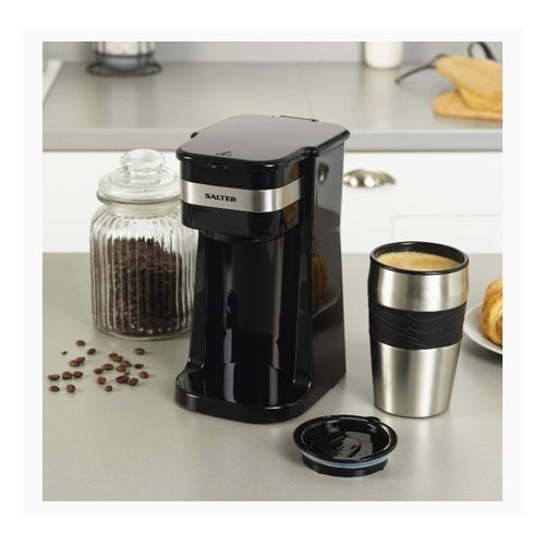 This fantastic coffee maker to go by Salter is the perfect way to enjoy a fresh cup of your favourite filtered coffee every morning.Simply place your ground coffee or coffee pod into the reusable filter, place into the brewing chamber and add up to 430 ml of water.With power and ready indicator lights, The coffee will dispense in 3-4 minutes which is much faster than stopping at The coffee shop.It also comes with a 420 ml stainless steel travel mug and a secure easy-drink slider lid so you can enjoy your fresh coffee on the go.Measuring 17.5L x 13W x 24.5h cm, the coffee Machine is compact and convenient, making it brilliantly to store of your kitchen counter.