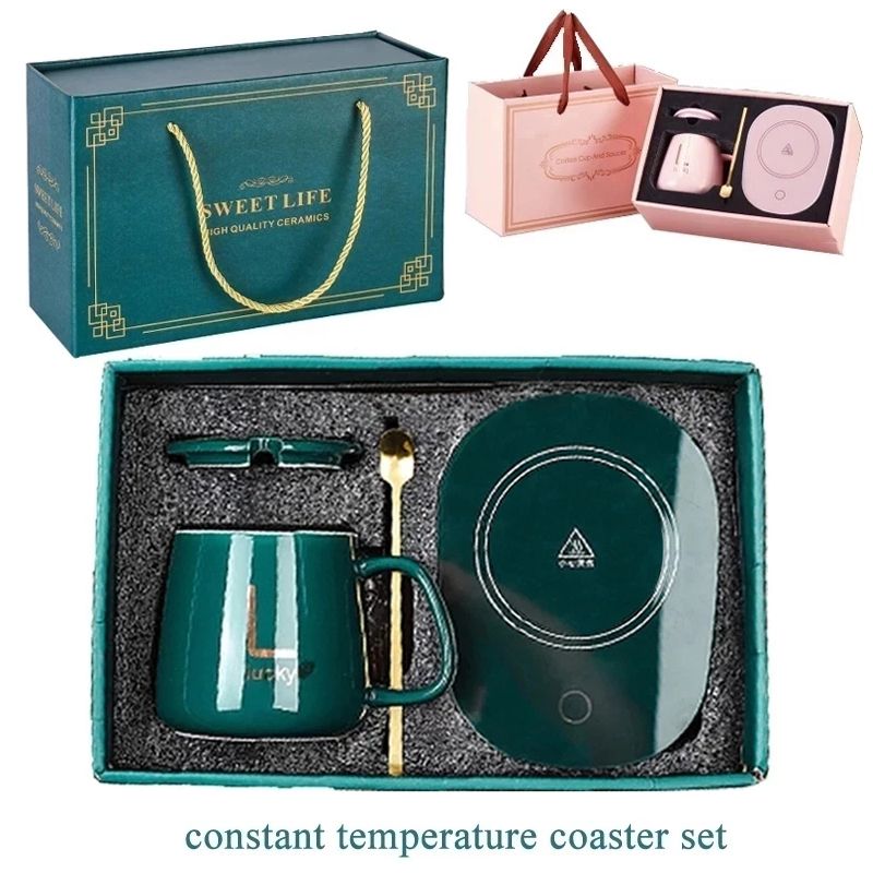 Coffee Mug Cup Warmer Pad Intelligent Constant-temperatures Heating USB Electric Mug Set Office Milk Tea Water Home Office GifNote:This is Ecological chain products, so there is no logo, pls kindly understand, thanks.Features:● Intelligent Constant Temperature● It can choose the version with EU/US/AU/UK plug, the heating effect will be better, if you need, you can remark on the order, or you can contact with me.● It only includes the Heating Pad, without the Cup.● Only the Gift Box Sets includes the Cups.● Single coaster package size: 250mm X 120mm X 210mm● Gift pack size: 300mm X 220mm X 100mm● Heating pad size: 120*165mm● Cup capacity: about 350ml