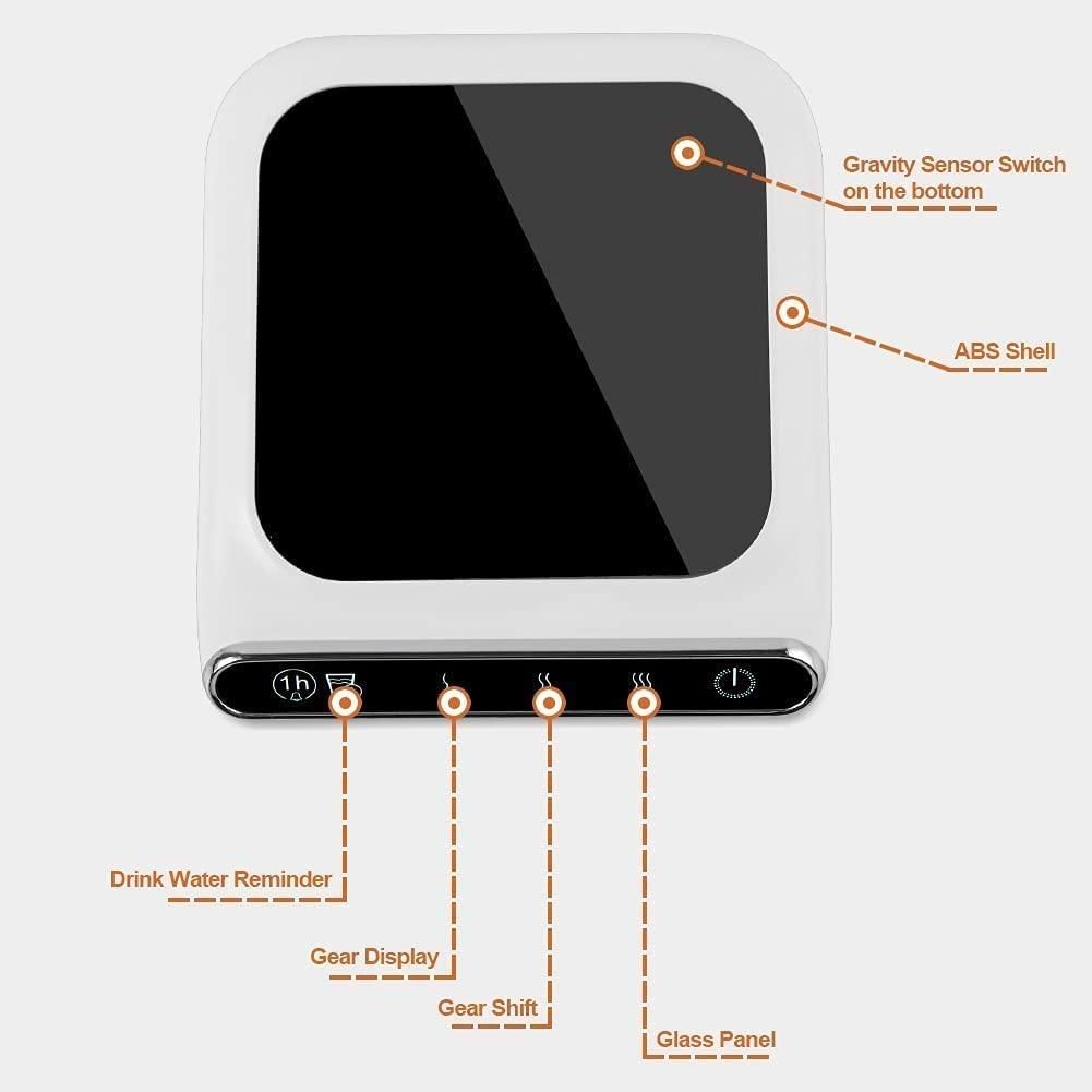 - 3,Easy to Clean & Portable:The surface of the heating plate is easy to clean, the light and simple design and the portable cup warmer are very easy to carry and can be carried anywhere. Intelligent heating, more convenient to use. It is a good companion for leisure gatherings, work, study, and women's special periods.