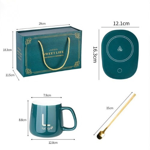 Lucky Ceramic Coffee Cup with Automatic Heating Pad 55 & deg;C Temperature Low Power Saving Fast Heat A coffee warmer can keep your coffee at the most suitable temperature for drinking. Safe and Convenient Design: The coffee mug warmer uses a tempered glass heating plate with a waterproof design. The heating plate diameter is 3.4 inches, which fits most size mugs. Get the Best Coffee Drinking Experience: It is highly recommended to use flat-bottomed, thin-walled glass, ceramic, stainless steel, and other cups with good thermal conductivity. The Best Gift Choice: The exquisite packaging is very suitable as a gift. It is the best gift for your family and friends on Christmas, birthdays, and other occasions.