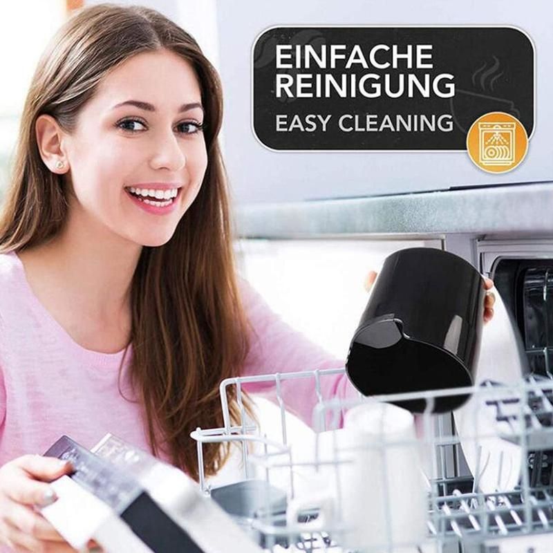 EASY TO CLEAN: When the door filter is closed, the coffee grounds now fall directly into the grinding box. The raised rear wall prevents splashing. Due to the large opening, the container can now be accessed freely. The interior can be comfortably rinsed with water. Also suitable for dishwashers.