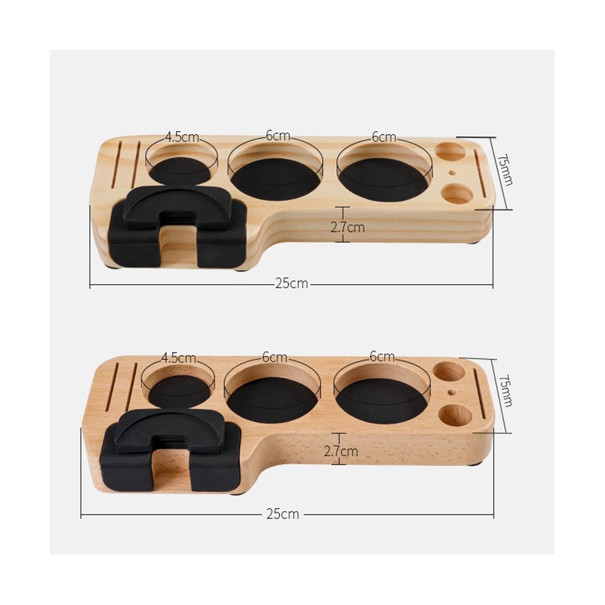 [Durable Material] Espresso tamper holder is made of high quality wooden and silicone, smooth edge, not easy to crack and deform, sturdy and durable.