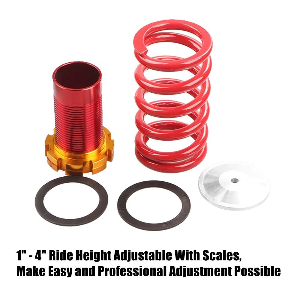 Come with 4 pieces coilover (two front, two rear),o-ring spacers, wrench and hardware for easy installing.