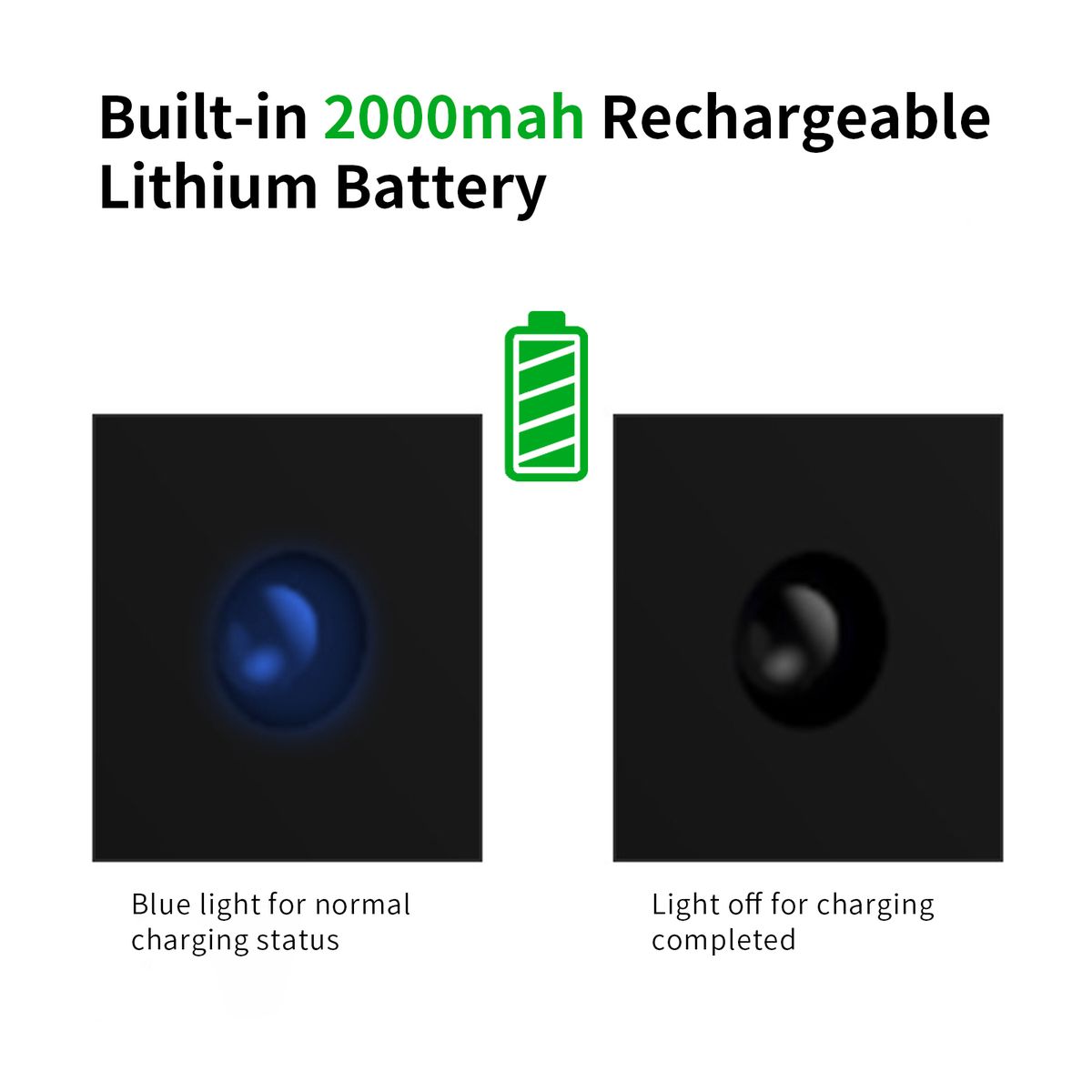 Noise reduction design, even at the high wind speed still quiet. Built-in 2000 mah lithium battery, a full charge, about 4 hours of use.