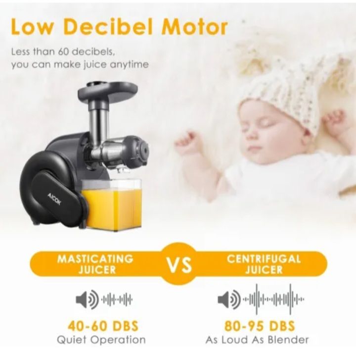 Multiple Recipes: Masticating juicer can make various health foods for your family, especially for your baby. Like extracting gingers, celery, wheatgrass, carrots, apples, oranges, and other fibrous fruits and vegetables. A masticating juicer will give you more juice from the food itself.