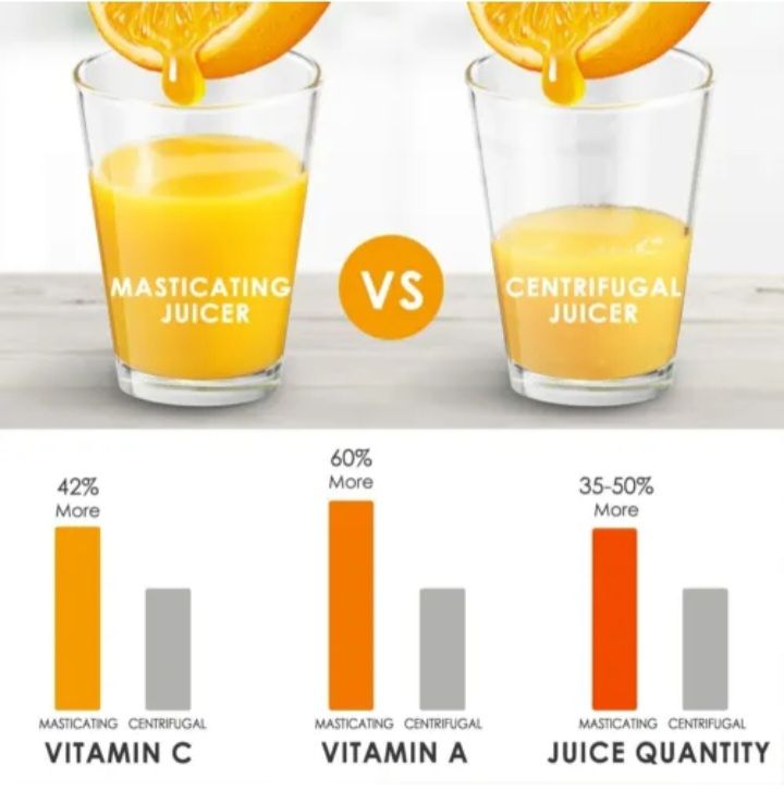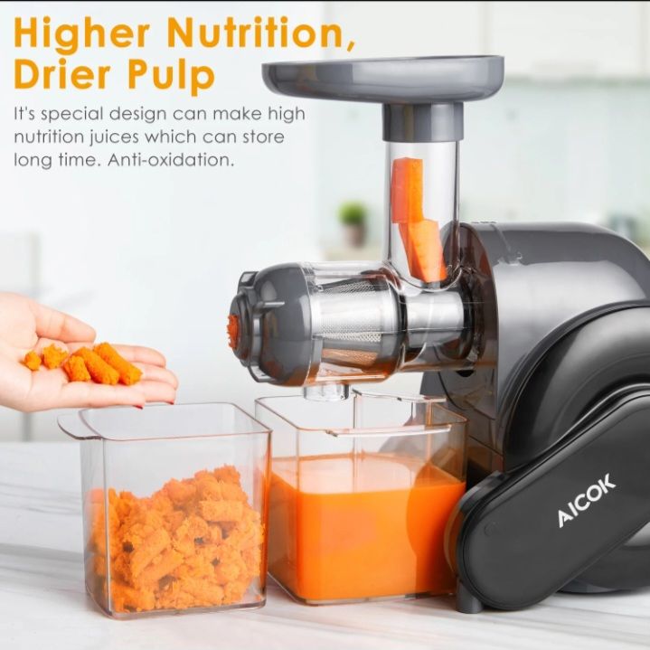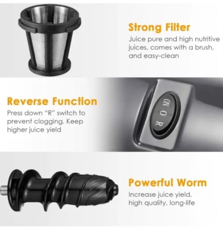 Higher & Purer Juice Yield: This slower, low rpm process extracts more juice from vegetables and fruits than centrifugal juicers, especially leafy greens. A strong filter and worm can help you make higher and purer juice.