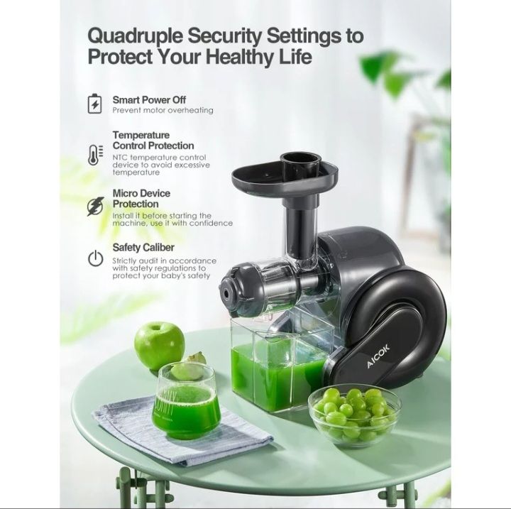 Safe & Silent & Easy Use: FDA & BPA-free. With less than 60 decibels motor and a stable body, you can safely use it at any time and any place. Reverse function, the juice extractor can be used continuously and without clogging. The removable parts are available for the dishwasher.
