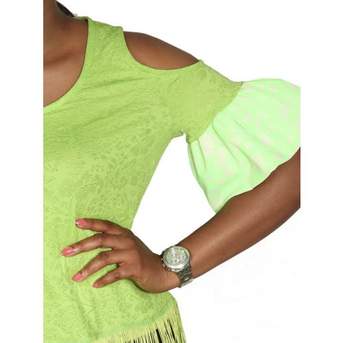 See-through printed organdy fabric blouse with 180 degrees flared sleeves and buttons for a woman who love fashion and love to stand out always in every occasions. to bring out the fashionable woman in you. A blouse to make you look stunning and stand out in your office and casual occasions. A trendy kind of blouse for a perfect fit and for a woman that loves fashion.Lbs-9411