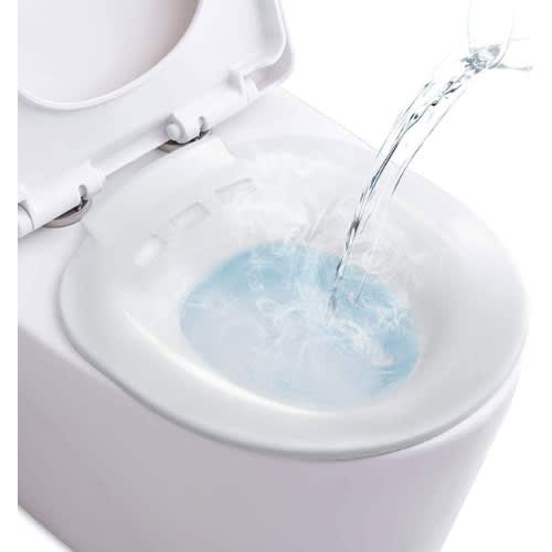 Unique Vent Design There are 5 water outlets at the back of the sitz bath. When the water level is too high, it will automatically flow into the toilet, so you don't have to worry about water overflowing and wetting your floor.