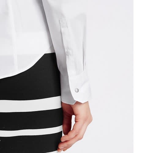 M & S Pure Cotton Dobby Spotted white Shirt