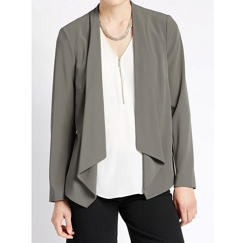 M&S Collection Open Front Zipped Sleeve Waterfall Blazer