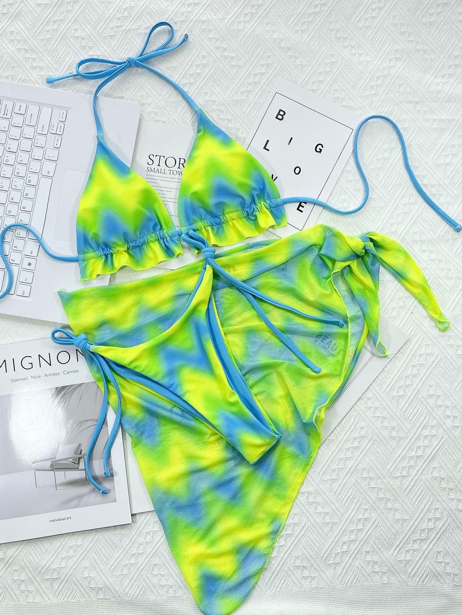 1X 3 Pieces Bikinis Set with Skirt Tie-Dye String Bathing Suit Women y Swimsuit Female Swimwear Backless Lace-up Beachwear
