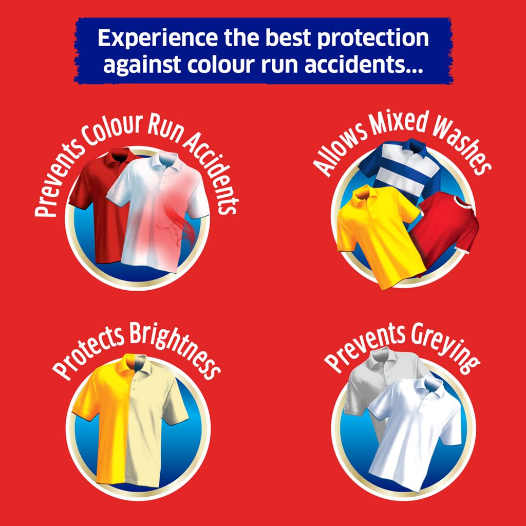PREVENTS COLOUR RUNS TO YOUR FABRIC AND ALLOWS MIXED WASHES.