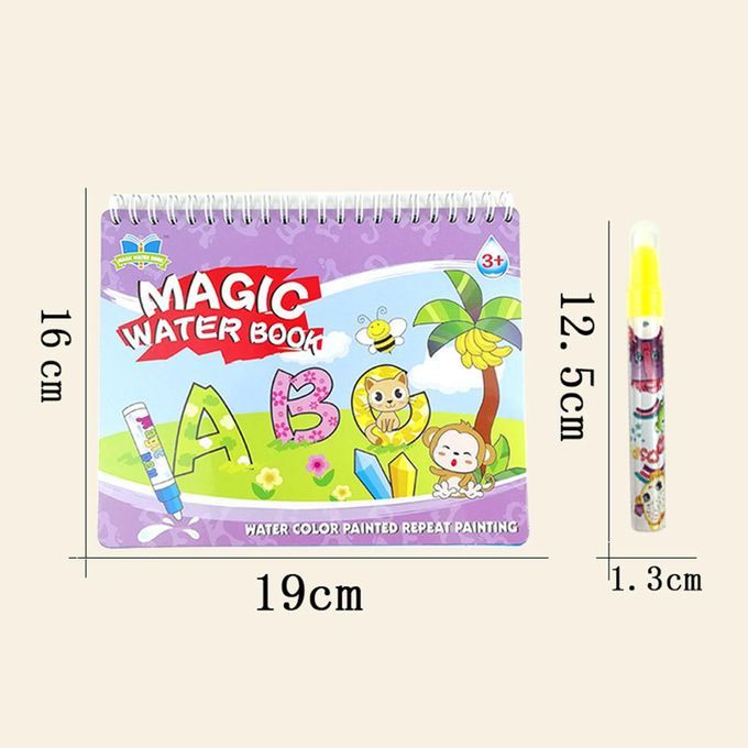 Your kids can adopt the educational painting book with ergonomic design pen to use comfortably, improve interactive ability, creativity ability, and visual ability, and use in the train, plane, restaurant, car, or outdoor. It is a painting book which is not only with environmental premium texture for kids to use safely, but also with easy-using design and reusable texture to reuse for many times, paint with water pen without pigment, and dry it after painting then erase it to reuse after 3-10 minutes.