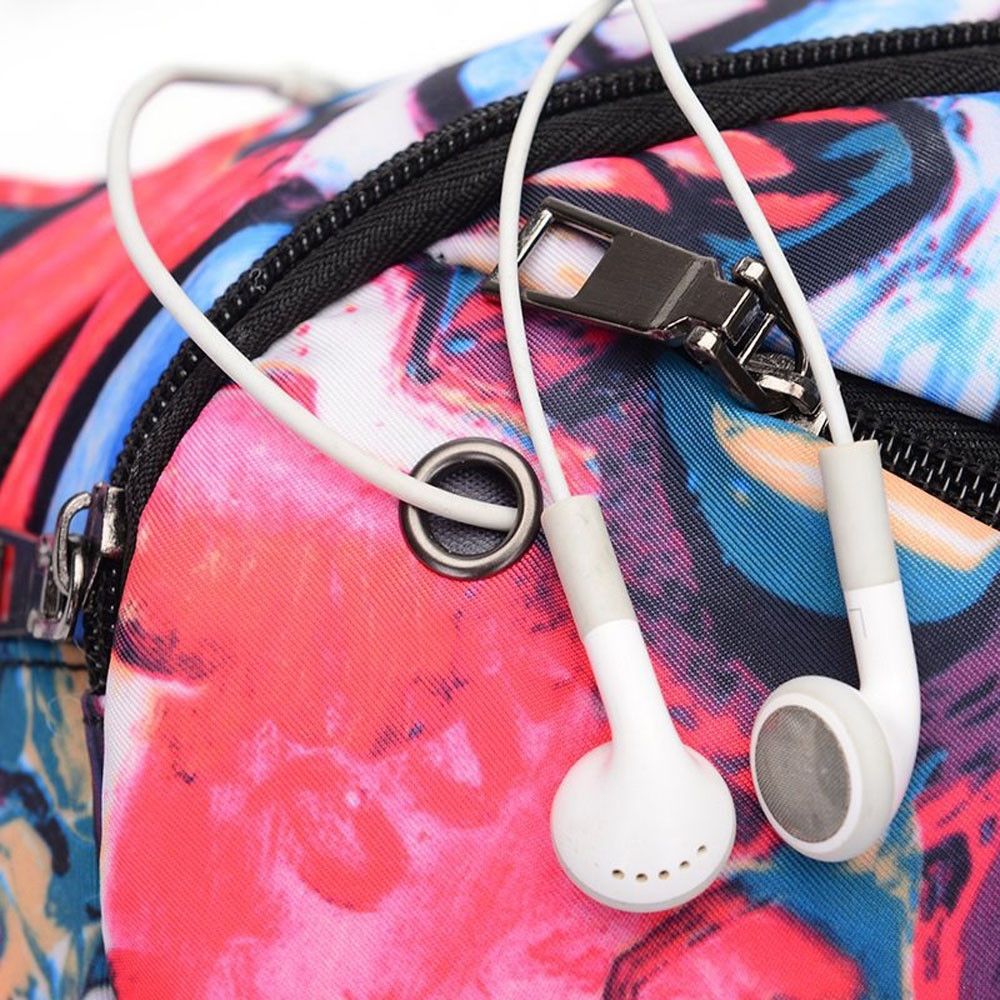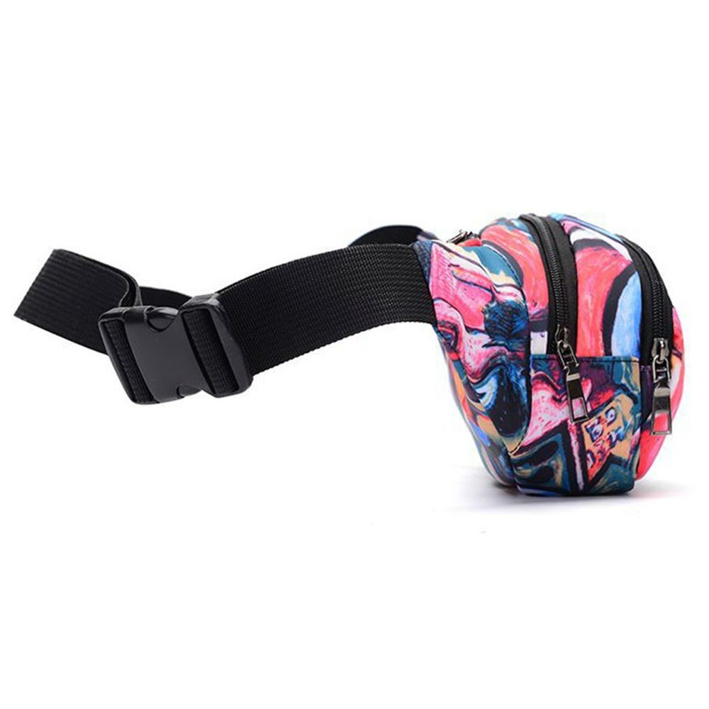 Color Printing Multi-function Casual Pockets Ladies Outdoor Purse Waist Bag(Red)