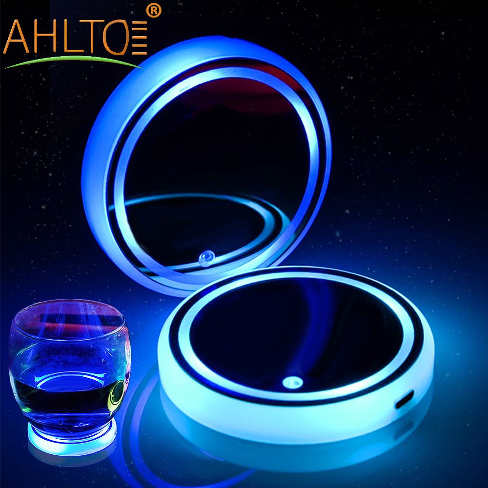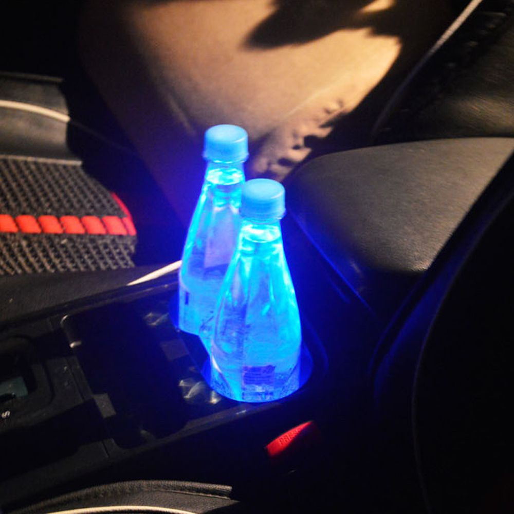 1X 2X Car Dome LED Cup Holder Automotive Interior Lamp USB Multi- Colorful Atmosphere Light Drink Holder Anti-Slip Mat Product Bulb